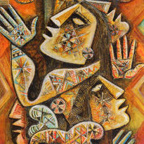 The gap has been bridged with perhaps only the subject matter as its variation. While the method of treatment has significantly changed, the occidental imagery has remained constant. The novelty in the treatment and the subject matter is contemporary. But what might to interesting is the change from the myth to the present that exists in the day to day life. While the metal was reduced to images in bronze and brass, as in stone sculptures or as reliefs, that remained to adorn the temple walls, pillars, floors, doorways and the ceiling, it continues to remain an excellent work of the past even today. In my work I have never ceased to be a mythologist, but the present has held in my thoughts, a certain concern for the human condition. To voice this mood I have depicted in my metal reliefs, as also my paintings, concepts which relate to insecurity in life.